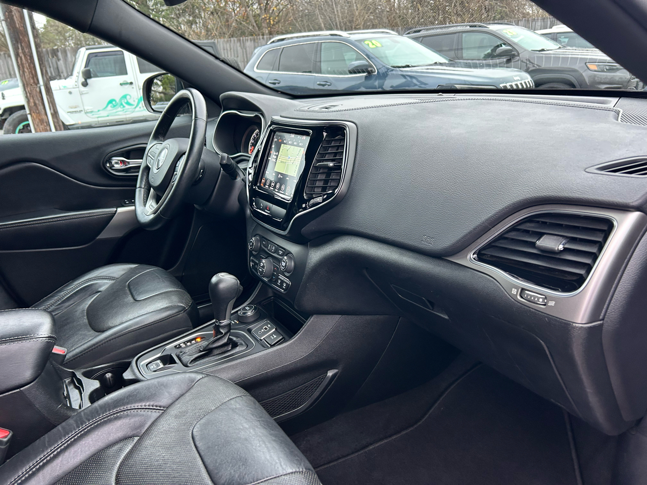 With a sleek design that demands attention, this Cherokee is equipped with 19" Granite Crystal aluminum wheels and a stylish body-colored exterior that exudes confidence. The LED daytime running headlamps and fog lights not only provide enhanced visibility but also add a touch of sophistication to the overall look.