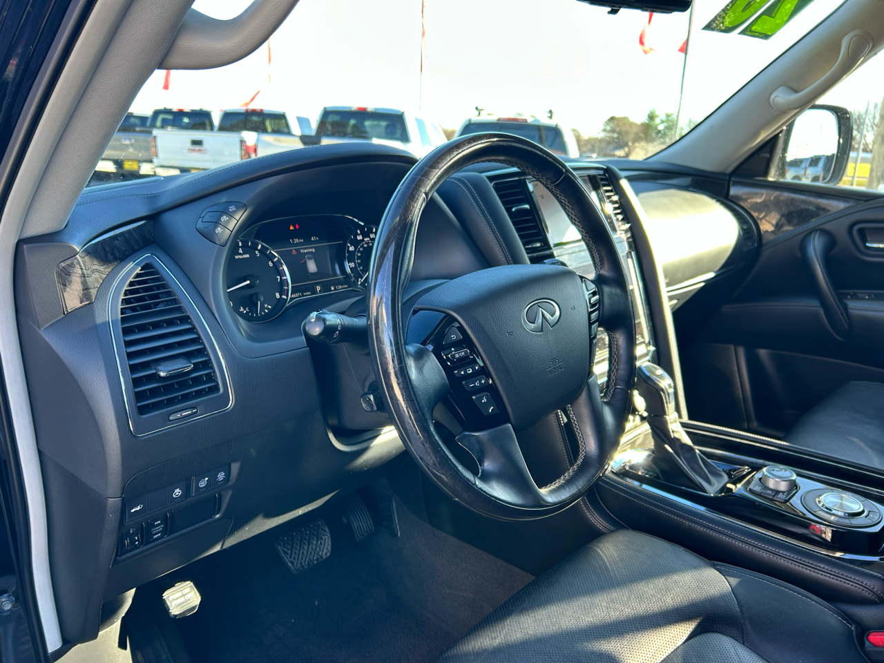 Whether you're cruising through the city or heading out for a road trip, this Infiniti QX80 has you covered. The spacious cabin offers ample storage options, including a locking glove box, console storage, and rear console storage with multiple power outlets for your convenience.