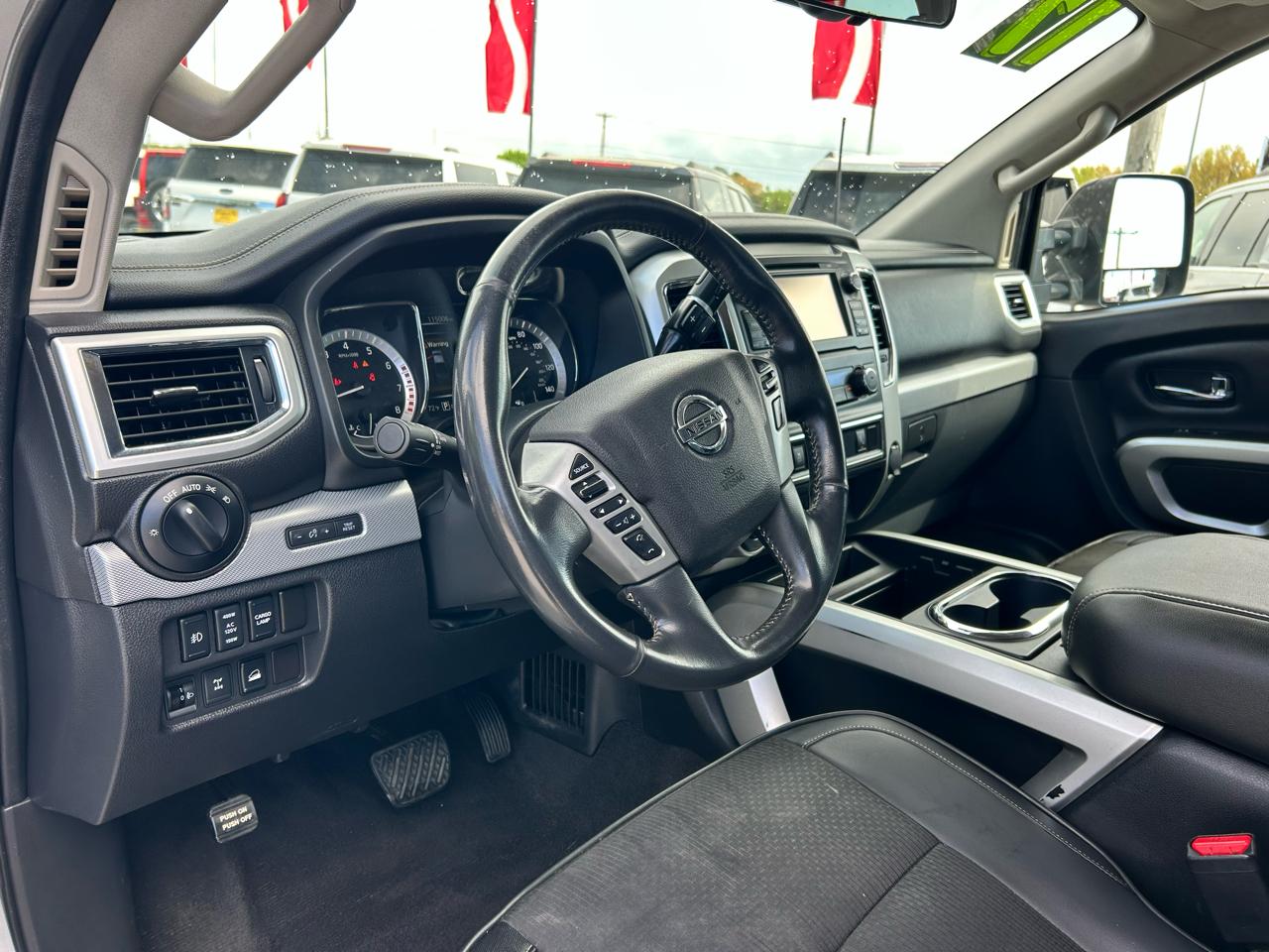 Don't let the rugged exterior fool you - inside, this Titan XD offers comfort and convenience. With dual-zone front automatic air conditioning, cruise control, and a leather steering wheel, you'll feel right at home behind the wheel. The interior features durable cloth seats, ample storage space, and a variety of power outlets to keep you connected on the go.